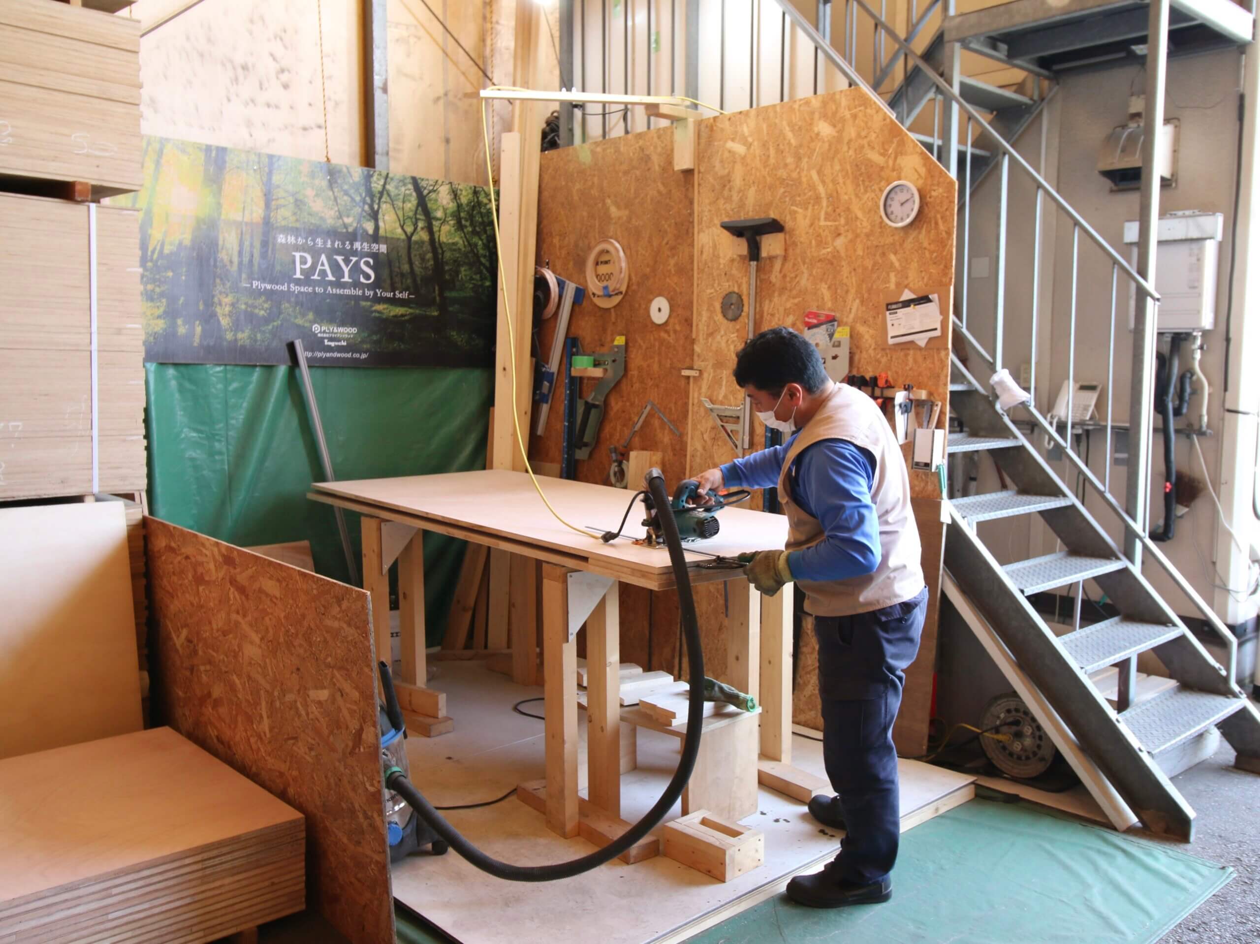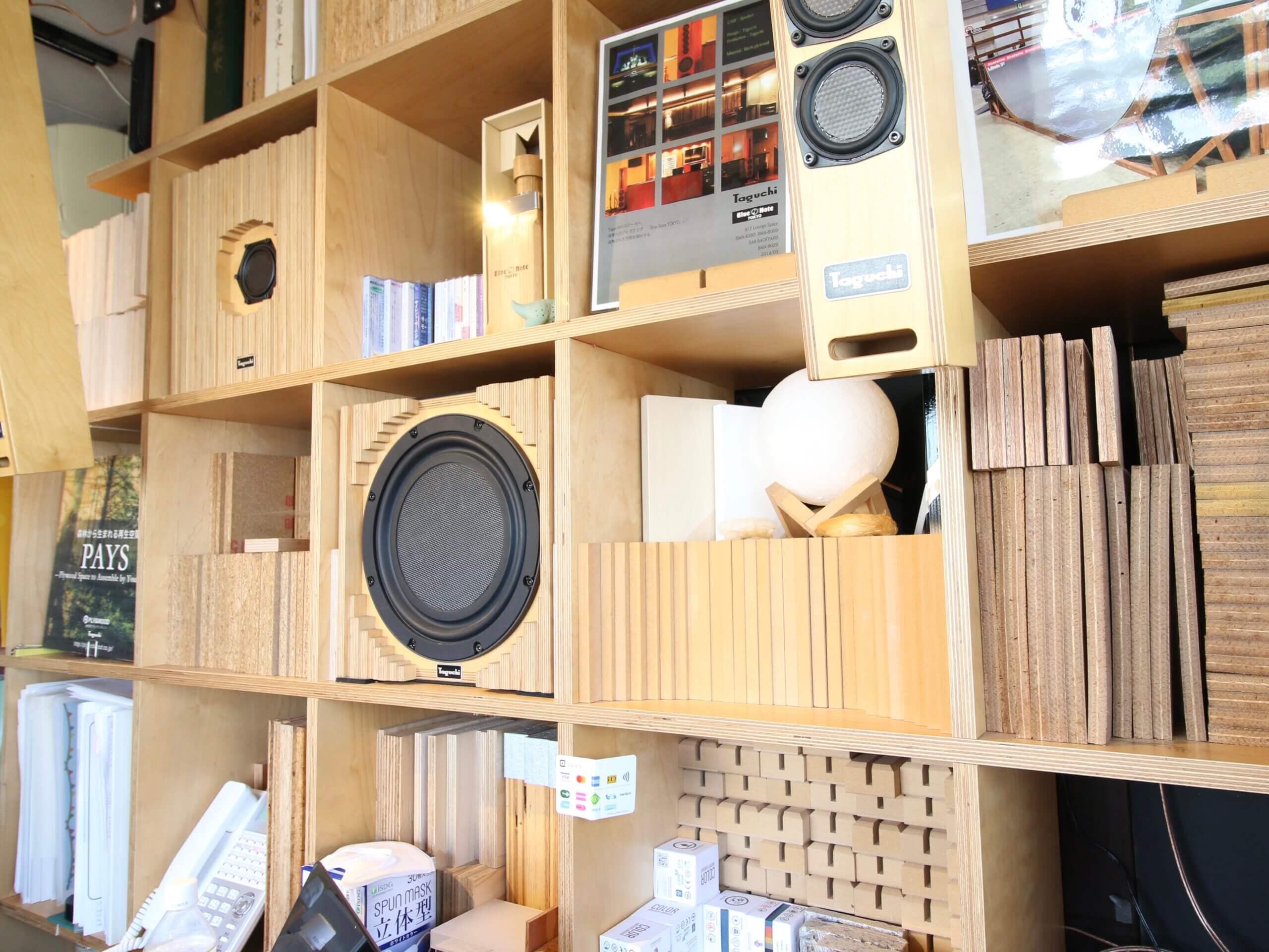 合板は軽く加工しやすい他に、音や振動を吸収するという特性がありその特性を活かしてスピーカーに加工したり、音響が響きやすいような家具を作ったり、多岐にわたり活用しています。